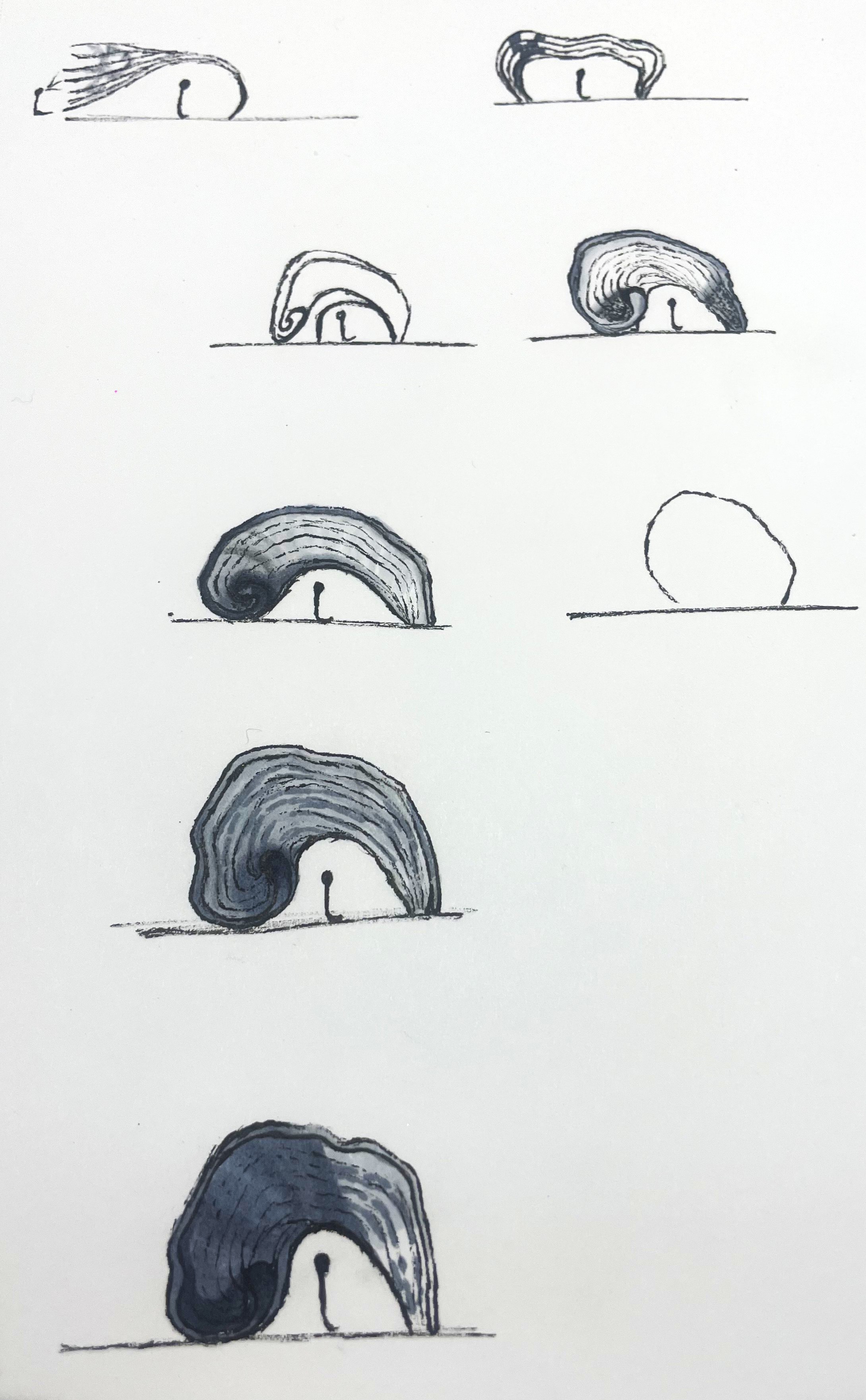 I began creating a collage to explore the feeling of presence and connection to ancestry, even in the depths of the sea. As I sketched these patterns, I reflected on what it means for an identity to be erased, and how design can help us remember. By projecting these marks within coral-like cave walls, I wanted their story to be told through uniqueness and beauty, not only through trauma.